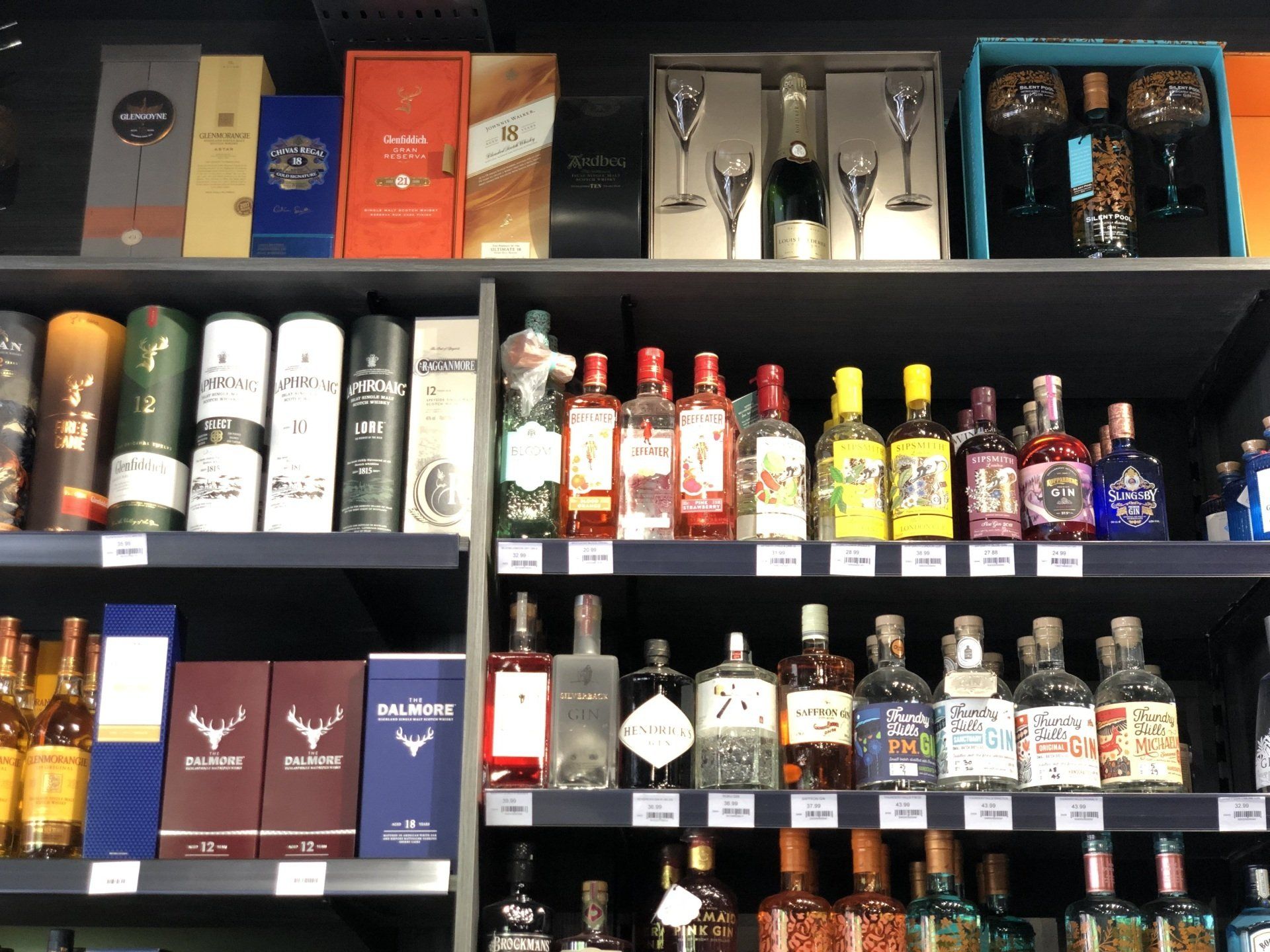 Whisky & Bourbon offers another large selection from Macallan and Glenfiddich to Jack Daniels and Jim Beam.